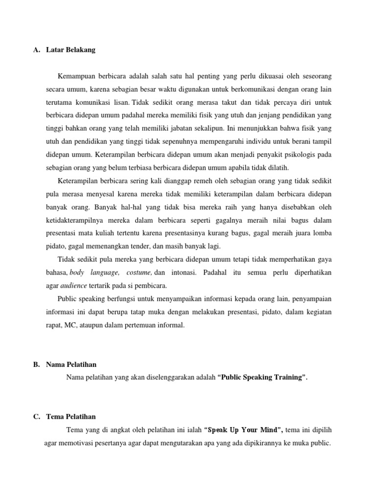 Proposal Public Speaking Training Diklat Annit Pdf